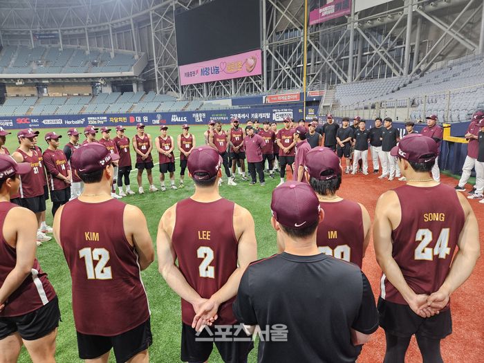 키움 선수들이 15일 서울 고척스카이돔에서 설종진 감독대행과 첫 미팅을 나누고 있다. 고척 | 김동영 기자 raining99@sportsseoul.com