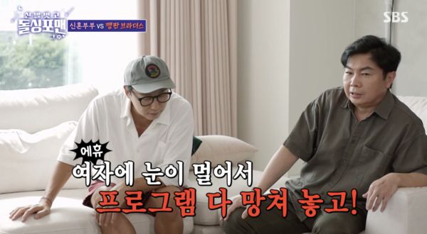 두 사람의 깨볶는 모습은 결국 싱글 탁재훈의 심기를 건드렸다. 탁재훈은 이들을 향해 "여자에 눈이 멀어서 프로그램을 망쳐놓고"라며 비난했다. 이어 그는 "프로그램이 돌싱포맨인데 와이프가 왜 나오는거야. 잠깐만, 이거 4명인데 너(김지민) 나오고 너(이상민) 또 와이프 데려오면 나 안해"라며 볼멘 소리를 했다.