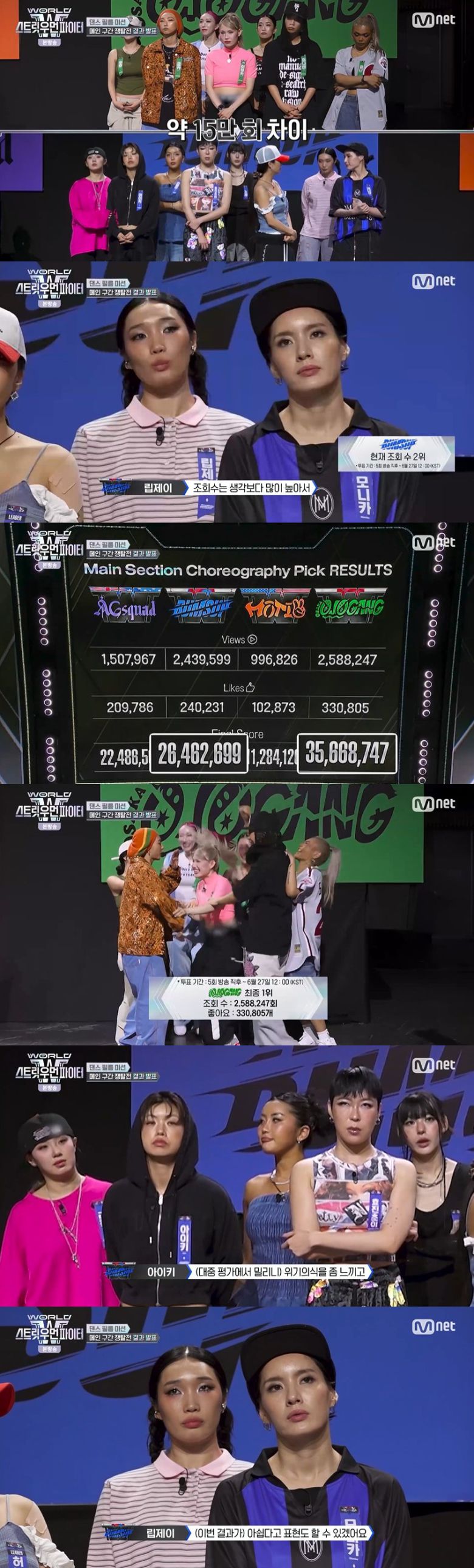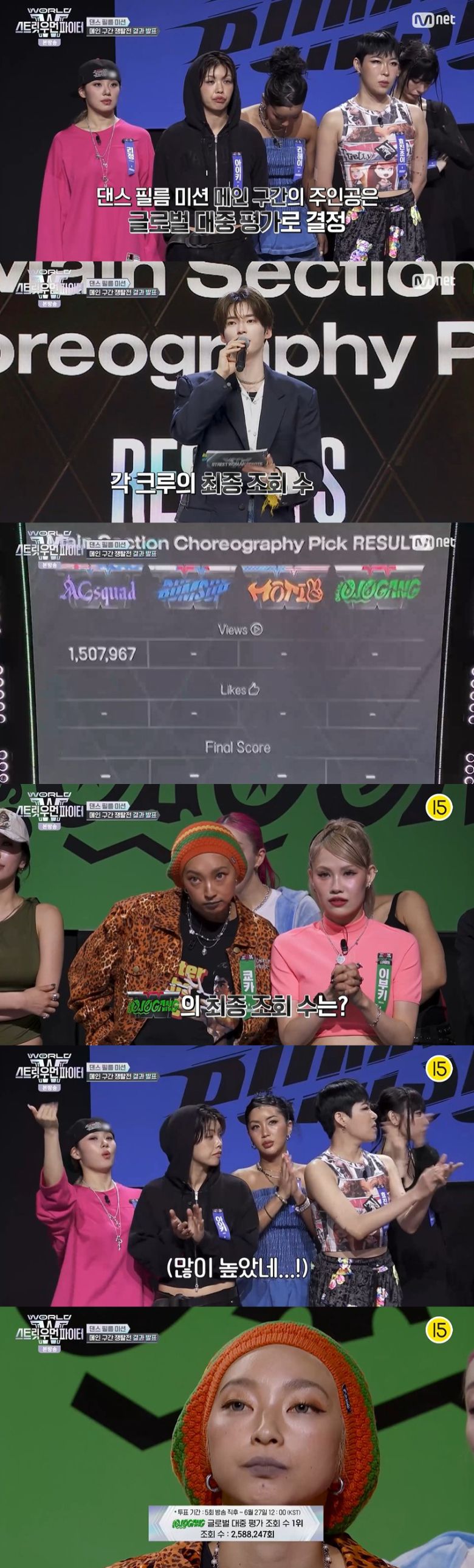 15일 방송된 Mnet '월드 오브 스트릿 우먼 파이터'(이하 '월드 오브 스우파(WSWF)') 8회에서는 에이지 스쿼드(AG SQUAD), 범접(BUMSUP), 모티브(MOTIV), 오사카 오죠 갱(OSAKA Ojo Gang) 네 크루의 댄스 필름 미션 메인 구간 쟁탈전이 펼쳐졌다.