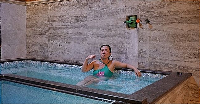 파격적인 수영복 차림으로 온천욕을 즐기는 모습까지 공개했다.