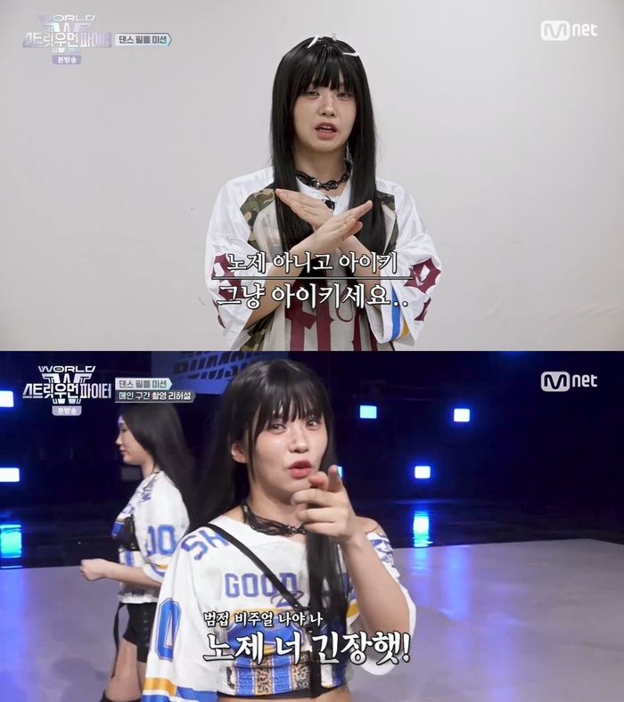 이날 아이키는 긴 생머리 가발을 쓰고 등장해 눈길을 끌었다. 카메라 앞에 선 아이키는 “나 노제 아니고 아이키다. 잘 잡아달라. 자막에 아이키라고 적어달라. 노제 아니니까”라고 말했다. 이를 본 노제는 황당하다는 표정을 지었다.