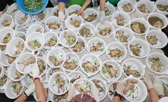 초복을 닷새 앞둔 15일 부산시 남구 새마을부녀회 회원들이 지역 내 홀몸 어르신 등에게 삼계탕 400인분을 전달했습니다. 삼복더위를 이겨내는 데 작으나마 힘이 되면 좋겠습니다. 송봉근 기자▶ 중앙일보 / '페이스북' 친구추가▶ 넌 뉴스를 찾아봐? 난 뉴스가 찾아와! ⓒ중앙일보(https://www.joongang.co.kr), 무단 전재 및 재배포 금지이 기사의 카테고리는 언론사의 분류를 따릅니다.0공유하기