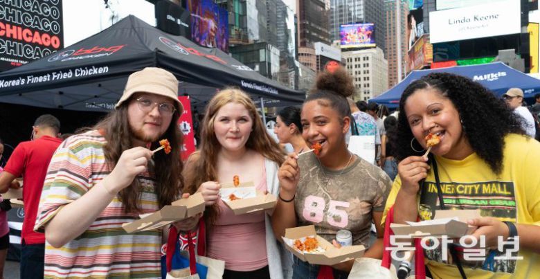 타임스스퀘어 BBQ치킨-밀키스 시식… 뉴요커-관광객 5000여명 참여