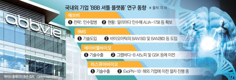 국내에서는 에이비엘바이오와 리스큐어바이오 등 BBB 셔틀 플랫폼 기술 분야에서 두각을 드러내는 기업들이 해외 기술수출 성과를 내고 있다.
