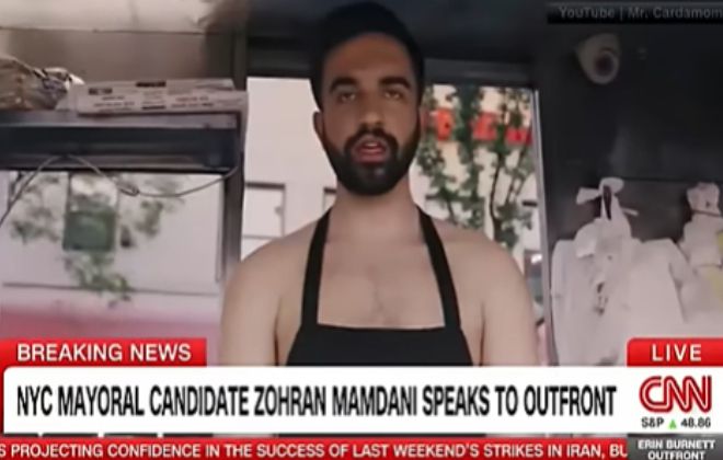 미국 생방송 인터뷰에 흑역사(?)가 고스란히 노출된 맘다니. 이를 두고 본인은 "부끄러운 순간"이라면서도 즐거워했다. CNN 캡처 |