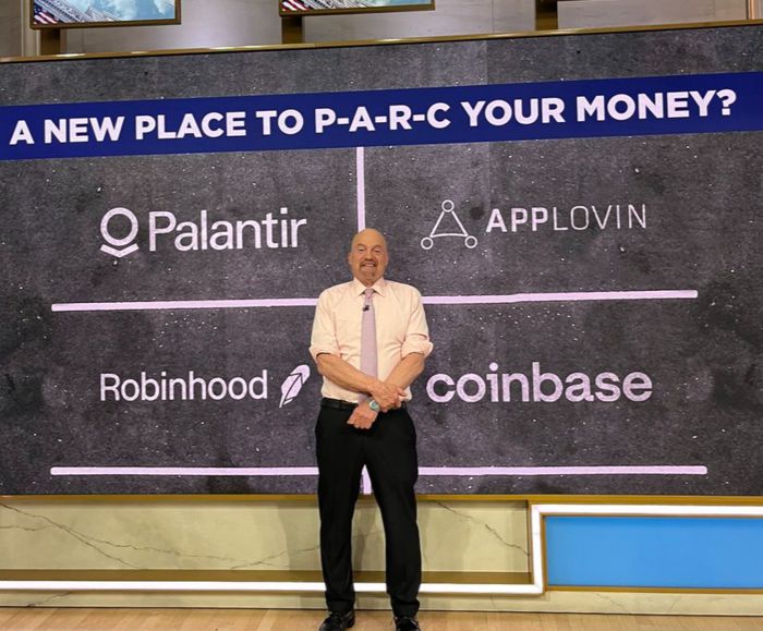 14일(현지시간) 투자 방송 진행자 짐 크레이머가 미국 주식시장의 팰런티어·앱러빈·로빈후드·코인베이스를 두고 ‘PARC’라는 신조어를 만들었다. <사진=짐 크레이머 X 계정>