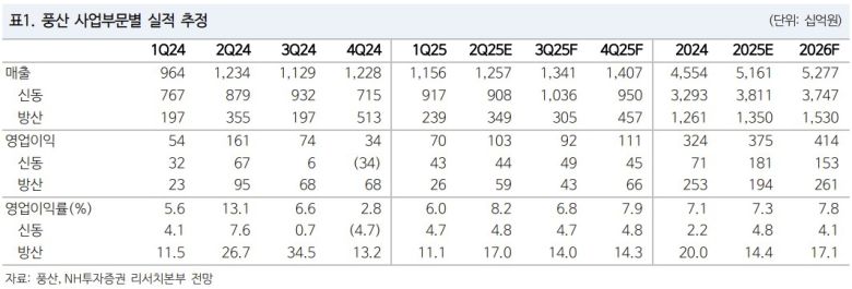 NH투자증권 이재광 연구원은 “풍산은 국내 유일의 탄약 생산업체로 소구경부터 대구경까지 다양한 탄약을 생산하고 있다”며 “글로벌 탄약 수요 급증으로 방산부문 실적 성장 지속하면서 2024년 사상 최대 실적을 기록했고, 올해도 성장을 지속할 것”이라고 전망했다.