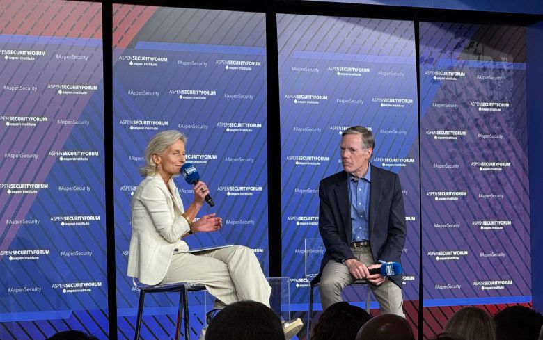 15일 미국 콜로라도주 애스펀에서 열린 애스펀안보포럼(ASF)에서 니콜라스 번스 전 주중대사(오른쪽)가 제니 민톤 베도스 이코노미스트 편집장과 대담을 하고 있다. /애스펀(콜로라도주)=김은중 특파원 |