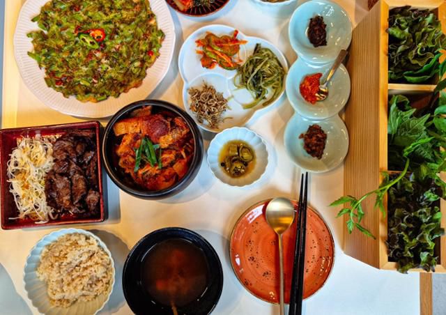 점심 한정 메뉴로는 갈비 쌈밥 정식을 추천할 만하다. 입에 넣자마자 깊은 육향을 느낄 수 있는 호주산 와규를 한식 갈비 양념에 구웠다. 질기지 않게 적당히 씹는 맛이 좋다. 쌈채소와 밑반찬, 장3종은 원하는 만큼 계속 리필할 수 있다. 매일 농장에서 수확한 채소를 활용해 쌈채소의 종류는 날마다 달라질 수 있다.