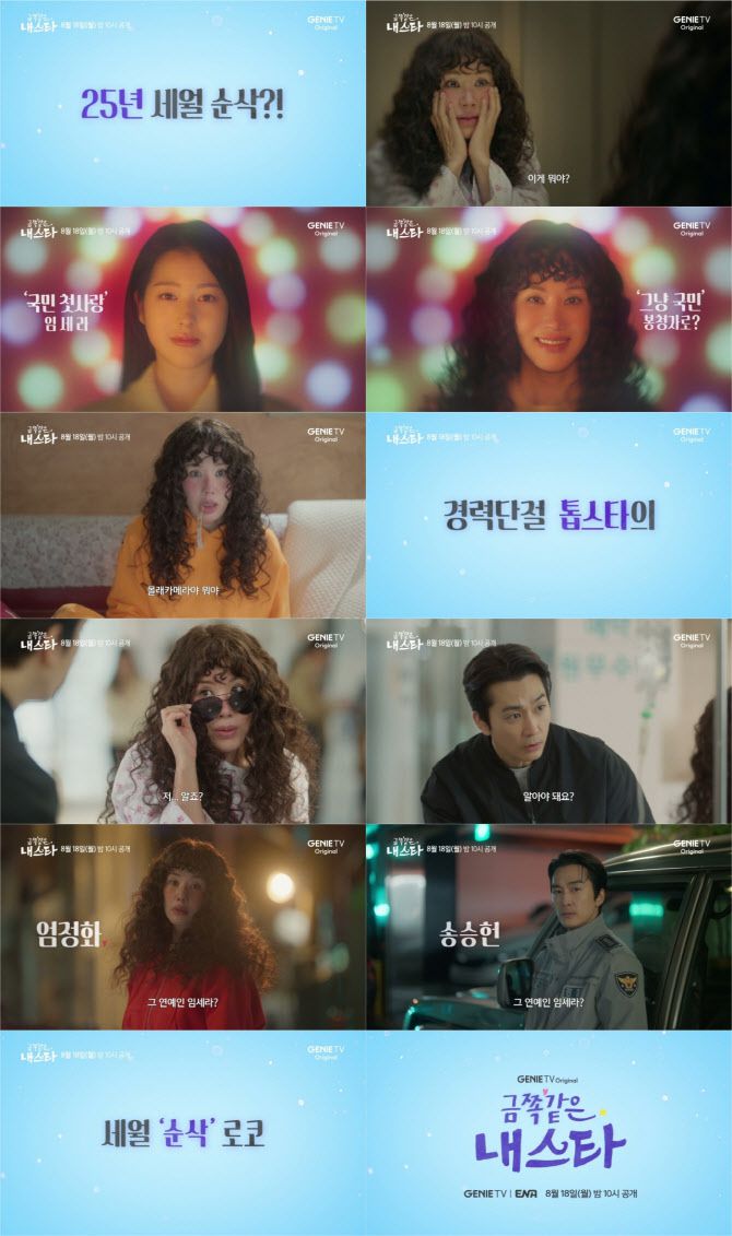 오는 8월 18일 첫 공개되는 지니 TV 오리지널 드라마 ‘금쪽같은 내 스타’(연출 최영훈, 극본 박지하, 기획 KT스튜디오지니, 제작 점보필름) 측은 16일, 25년 세월을 순삭 당한 봉청자(엄정화 분)의 좌충우돌이 기대되는 티저 포스터와 1차 티저 영상을 공개했다.