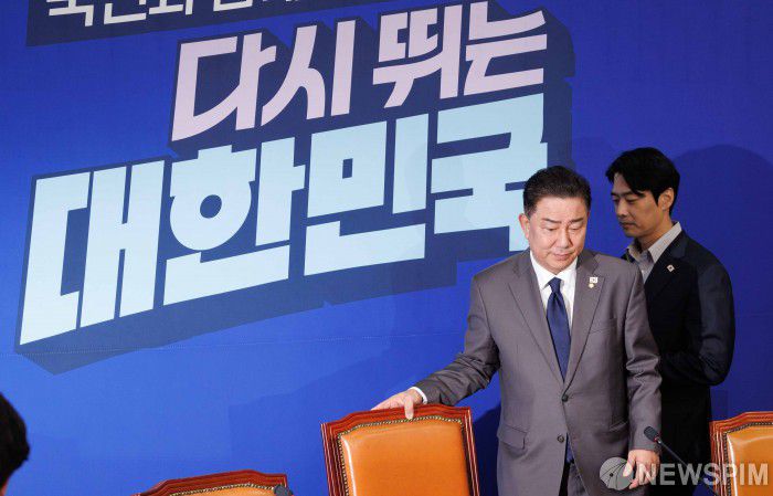 [서울=뉴스핌] 윤창빈 기자 = 김병기 더불어민주당 대표 직무대행 겸 원내대표가 16일 오전 서울 여의도 국회에서 열린 최고위원회의에 참석하고 있다. 2025.07.16 pangbin@newspim.com