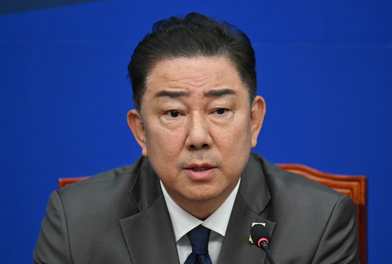 김병기 더불어민주당 대표 권한대행 겸 원내대표가 16일 오전 서울 여의도 국회에서 열린 최고위원회의에서 모두발언을 하고 있다. 임세준 기자