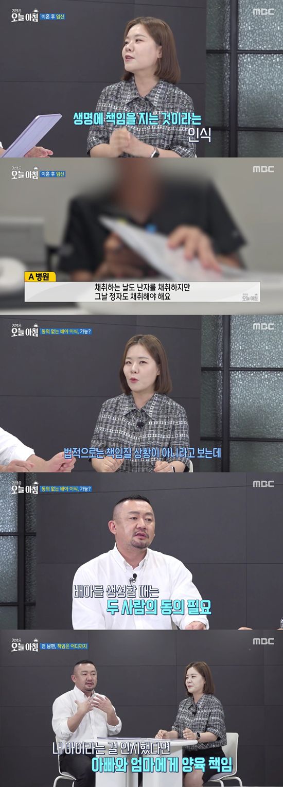 이나경 변호사는 "법적으로 책임질 상황은 아니지만 문제가 된다면 위자료를 청구할 수 있지 않을까 싶다"며 "도의적으로 부모로서 책임을 져야 하는 상황인데 동의 없는 배아 이식은 바람직하지 않다고 생각한다. 그러나 손해배상이나 법률 위반으로 보기에는 어려움이 있지 않나 생각이 든다"고 의견을 밝혔다.
