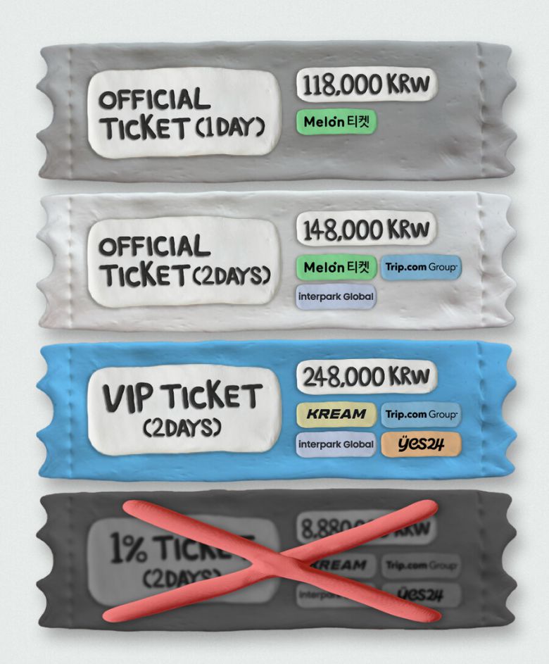 이에 주최사는 "관련 티켓 권종은 추후 면밀히 검토 후 재공지드릴 수 있도록 하겠다"라며 "현재 1% 티켓은 모든 예매처에서 판매 중단되었으며, 기존 예매자분들께는 개별 안내를 통해 전액 환불이 진행될 예정"이라고 했다.