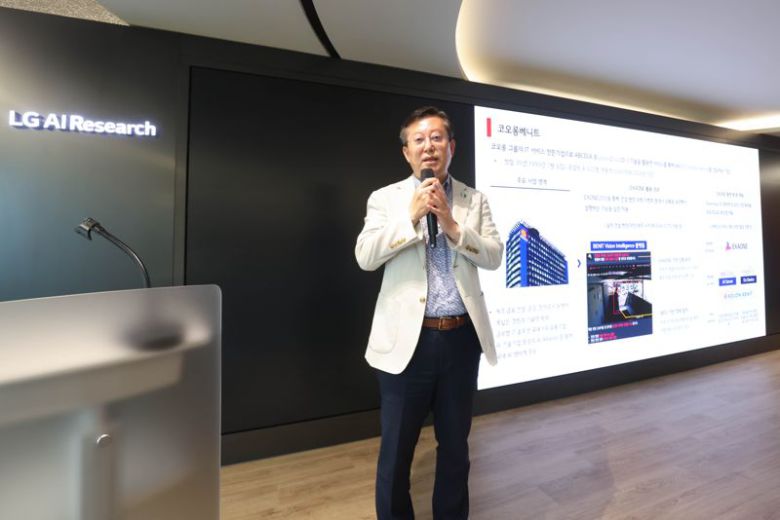 코오롱베니트 이종찬 전무가 지난 15일 LG AI연구원에서 열린 ‘엑사원 파트너스 데이’에 참여해 당사 ‘AI 비전 인텔리전스’ 기술을 설명하고 있다. 코오롱베니트 제공