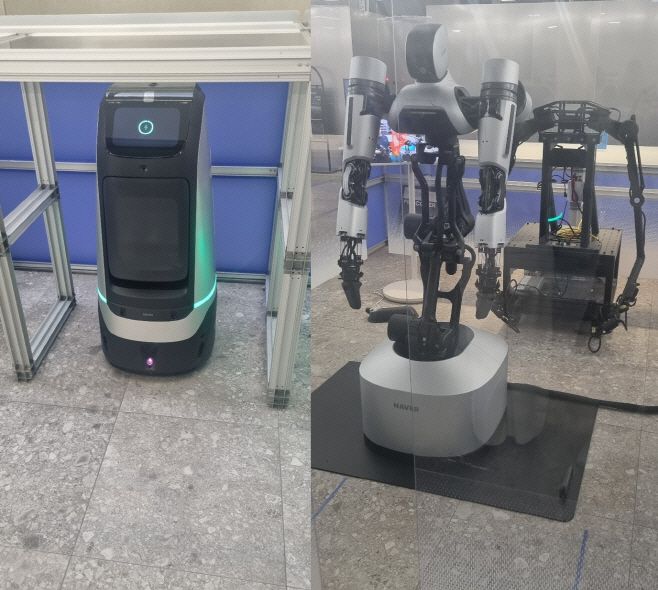 네이버가 개발한 로봇 루키(왼쪽)와 엠비덱스./김영진 기자 |