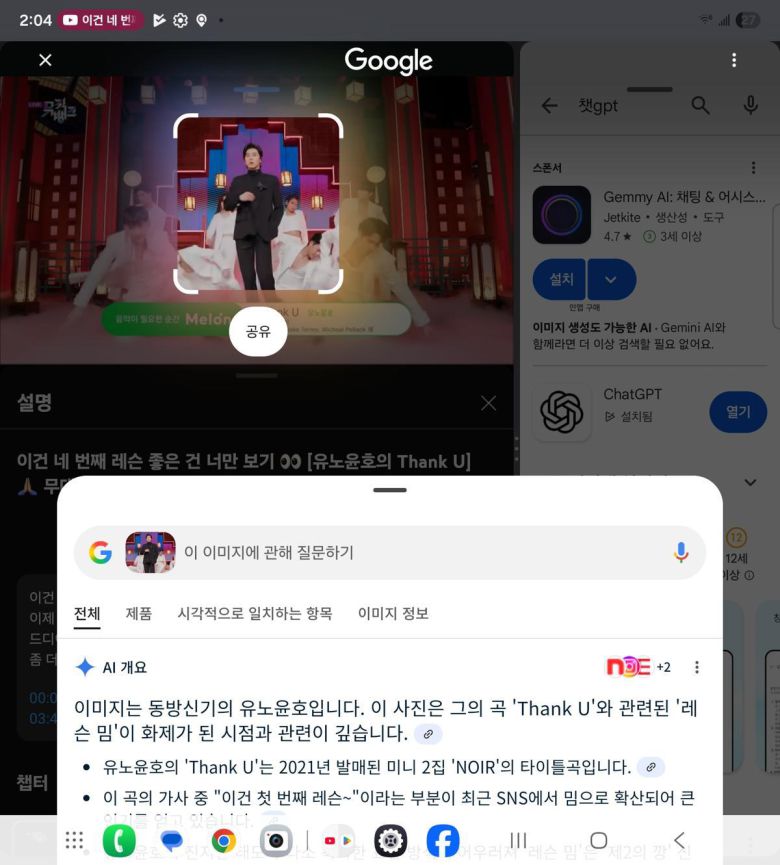 커진 만큼 화면을 분할해 동영상, 게임, 인터넷 등 여러 애플리케이션(앱)을 동시에 실행해 쓰는 멀티태스킹에 용이했다. 예를 들어 왼쪽 화면에는 유튜브를 띄워 가지 요리 영상을 틀고, 오른쪽 화면에서는 AI가 해당 영상을 분석해 레시피를 알려주는 기능을 수행하도록 하는 것이다. 화면에 원을 그려 검색하는 ‘서클 투 서치’ 기능에서도 강점이 있다. 게임을 하다가 미션을 어떻게 깰지 궁금할 때 게임 창을 내릴 필요 없이 바로바로 서클 투 서치로 검색하면서 정보를 얻을 수 있었다.