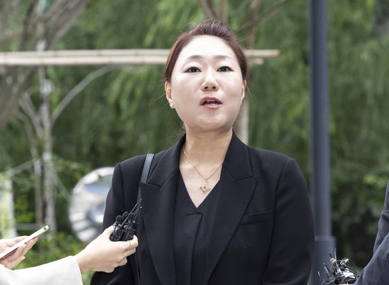 김영선 전 국민의힘 의원 보좌관을 지낸 강혜경 씨가 16일 서울 종로구 윤석열 전 대통령 부인 김건희 여사 의혹을 수사하는 민중기 특별검사팀 사무실에 참고인 조사를 받기 전 취재진 질문에 답하고 있다. 뉴시스