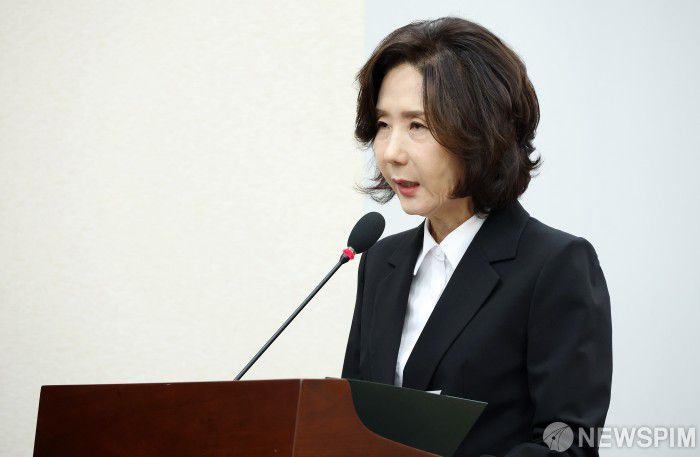 [서울=뉴스핌] 정일구 기자 = 이진숙 부총리 겸 교육부 장관 후보자가 16일 오전 서울 여의도 국회 교육위원회에서 열린 인사청문회에서 모두발언을 하고 있다. 2025.07.16 mironj19@newspim.com
