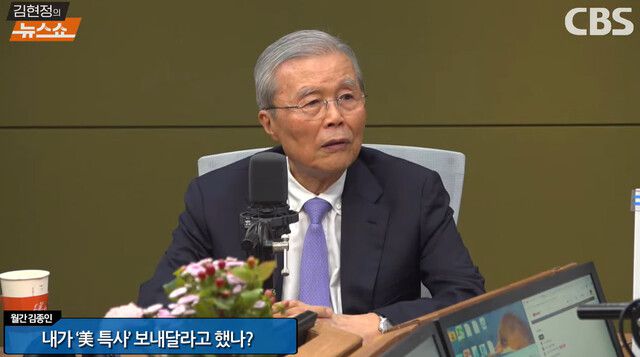 김종인 전 국민의힘 비상대책위원장이 16일 CBS 라디오에 출연해 미국 특사 논란에 대한 입장을 밝히고 있다. 유튜브 ‘CBS 김현정의 뉴스쇼’ 갈무리 |