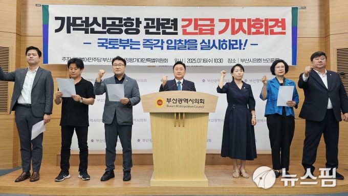 [부산=뉴스핌] 남동현 기자 = 더불어민주당 부산시당 시정평가대안특별위원회가 국토교통부에서 고려중인 가덕신공항 기본계획 재검토 방안에 대해 반발하고 있다. 2025.07.16 |