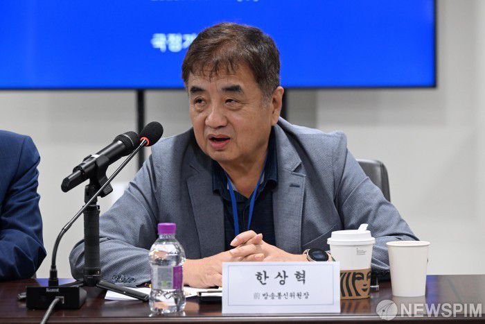 [서울=뉴스핌] 이길동 기자 =한상혁 전 방송통신위원장이 16일 서울 종로구 정부서울청사 창성동별관에서 열린 미디어혁신범국민협의체(가칭) 추진을 위한 의견수렴 간담회에 참석해 인사말을 하고 있다. 2025.07.16. gdlee@newspim.com