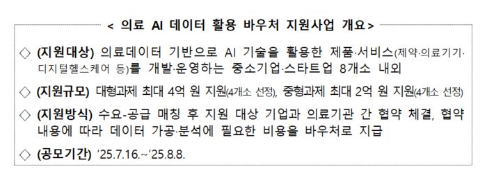 의료 AI 데이터 활용 바우처 지원사업 개요(자료=보건복지부) |