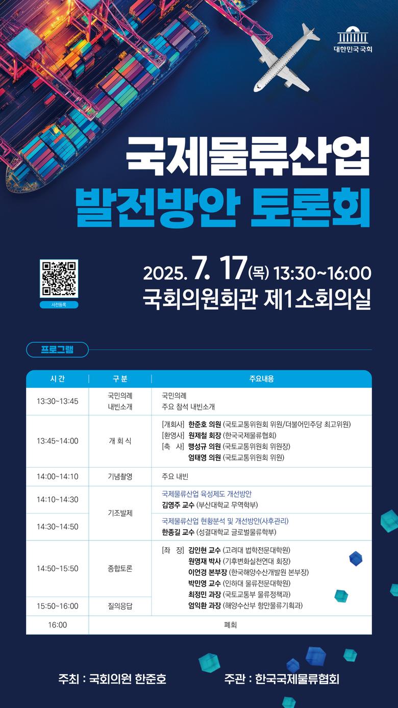 한준호 의원과 '국제물류 발전방안 국회 토론회' 개최