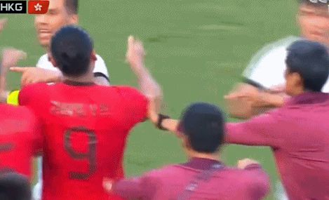 소후에 따르면 후반 4분 왕위동이 홍콩 주니오르에게 걸려 넘어졌고, 6분 뒤에는 왕위동의 로빙 패스가 나오자 상대 태클에 무릎을 가격 당해 쓰러졌다. 후반 16분에는 장위닝이 클레망 벤하두슈에게 얼굴을 맞았고, 후반 29분에도 왕위동이 탄천록의 팔에 얼굴을 맞아 바닥에 쓰러졌다.