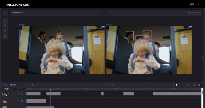 밀스톤 큐는 영상에 등장하는 일반인 얼굴, 브랜드 로고, 촬영 장비 등 민감하거나 불필요한 요소를 AI가 자동으로 인식해 블러 처리하거나 자연스럽게 제거하는 기술을 제공한다. 기존에는 프레임 단위 수작업 편집에 의존해 많은 시간과 인력이 필요했지만, 밀스톤 큐는 영상 전체를 이해하고 자동으로 처리해 실제 테스트 결과 최대 91%까지 작업 시간을 줄이는 성과를 보였다.