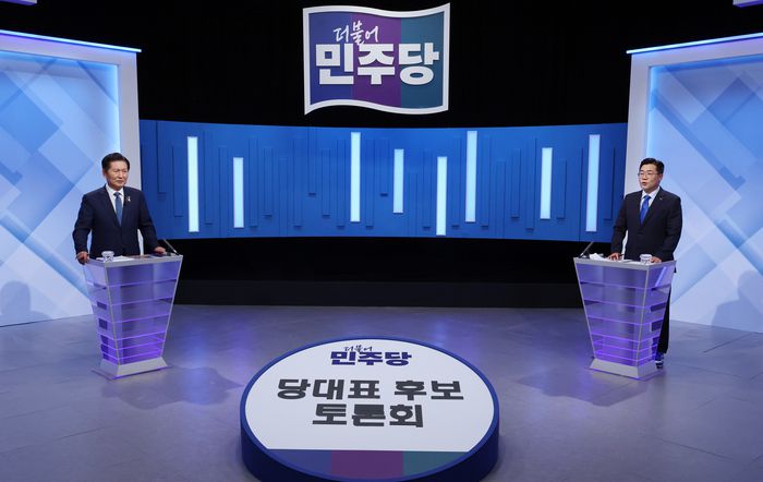더불어민주당 대표 선거에 출마한 정청래 의원과 박찬대 의원이 16일 첫 TV토론을 진행했다. ‘친이재명계’ 후보 간 대결로 펼쳐지고 있다 보니 상대를 자극하는 공격보다는 본인들의 이야기를 더 강조하는 모습으로 주로 진행됐다