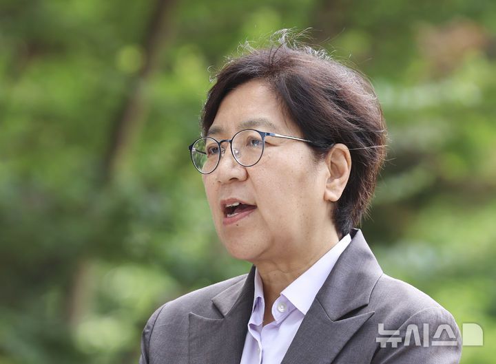 [서울=뉴시스] 김근수 기자 = 정은경 보건복지부 장관 후보자가 30일 서울 중구 T타워에 마련된 후보자 사무실로 출근하며 취재진의 질문에 답하고 있다. 2025.06.30. ks@newsis.com