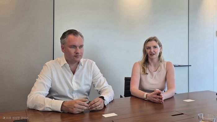 폰스 반 도르스트(Fons van Dorst) Edge 영국법인 대표와 세실 바브콕(Cecile Babcock) Edge 자산배분 부문 대표가 매일경제와 인터뷰를 하고 있다. [사진=맥쿼리자산운용]