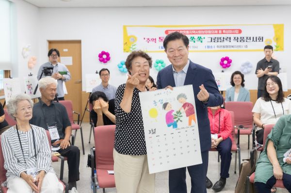 우선 학온동 지역사회보장협의체 특화 사업인 '추억 톡톡, 그림 쏙쏙'에 참여해 어르신들과 소통했습니다. 이 사업은 어르신들의 추억을 그림으로 표현하며 정서적 안정과 사회적 교류를 제공하는 프로그램으로, 이날은 사업 마지막 시간으로 완성한 작품을 전시하고 설명하며 소통하는 시간을 가졌습니다.