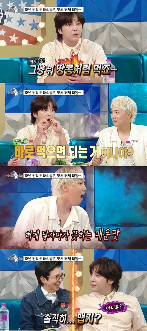 이를 본 이홍기는 “저도 매운 거 진짜 잘 먹는다”라며 맵기 테스트에 나서는데, 3단계 쥐똥고추를 한 입 먹고 혀를 찌르는 매운맛에 말을 잇지 못해 웃음을 자아낸다.