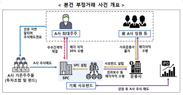 방 의장은 2020년 하이브를 상장하기 전 방 의장 지인이 설립한 사모펀드(PEF)와 지분 매각 차익의 30%를 공유하기로 주주 간 계약을 맺고 하이브 상장 후 약 4000억 원을 정산받았다. 증선위는 “방 의장이 하이브가 기업공개(IPO) 준비를 진행하고 있었음에도 불구하고 마치 상장이 지연될 것처럼 기존 주주들을 기망하고, 하이브 임원들이 관여된 PEF가 설립한 특수목적법인(SPC)에 보유 중인 주식을 매각하게 했다”고 의심했다.