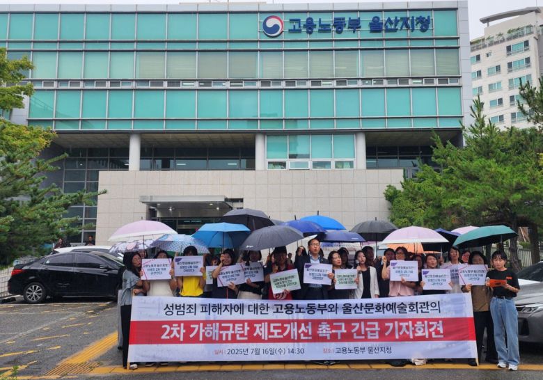 A씨 측 대리인 이미소 노무사는 이날 고용노동부 울산지청 앞에서 기자회견을 열고 “피해자를 보호하고 지원해야 할 고용노동부와 울산문화예술회관이 피해자의 의사를 무시하고 비밀유지의무를 위반하며 부적절한 조사와 징계 절차를 강행했다”며 “내부 지침의 전면적인 재검토가 필요하다”고 지적했다.