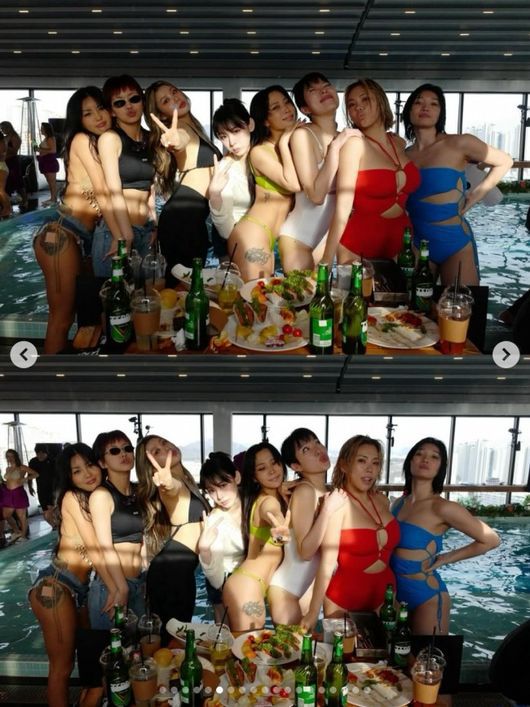 공개된 사진에는 케이블채널 엠넷 ‘월드 오브 스트릿 우먼 파이터’에서 팀을 이뤘던 범접 멤버들의 모습이 담겨 있었다. 허니제이부터 아이키, 모니카, 리헤이, 립제이, 가비, 노제, 리정, 효진초이까지 모두 한 자리에 모였다.