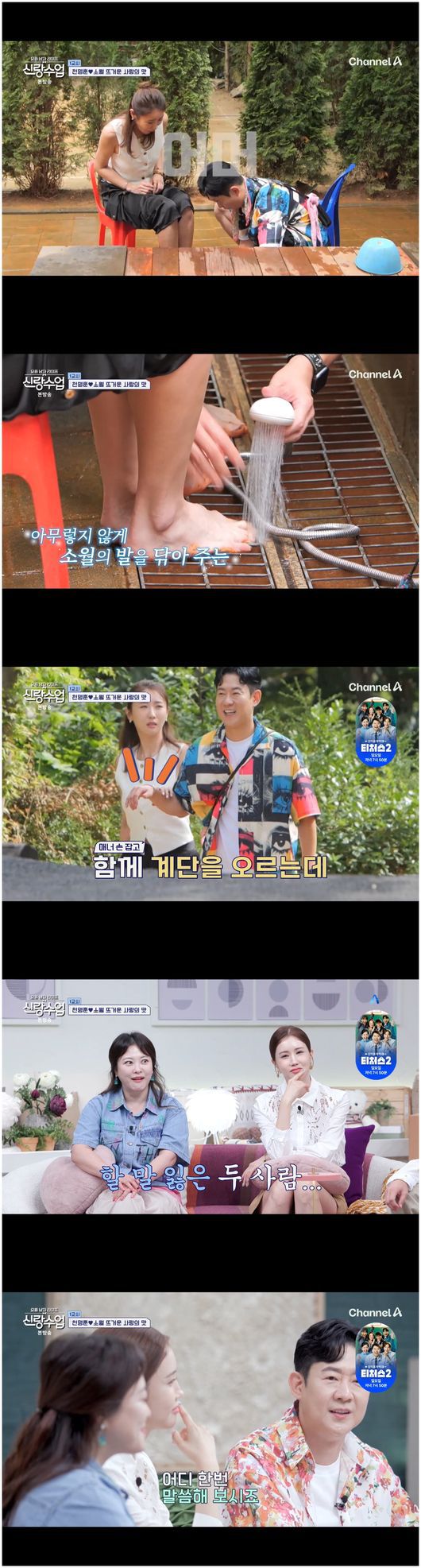 폭염주의보이지만 천명훈은 소월을 위해 황톳길 맨발 밟기를 제안했다. 소월은 “오빠랑 있으면 자꾸 힘든 걸 시키는 것 같다. 극한 훈련이다”라며 경악했다. 게다가 소월은 요즘 유행하는 길이가 긴 와이드 팬츠를 입었다. 천명훈은 “저는 황톳길 맨발 밟기가 참 좋았다. 다들 좋아할 줄 알았다”라고 웃었지만, 소월은 “오빠 해! 나는 안 할래”라며 질색했다.