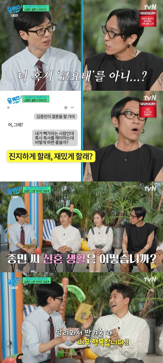 16일 방송된 tvN '유 퀴즈 온 더 블럭'(이하 '유퀴즈')에서는 김종민이 신혼 생활을 언급한 장면이 전파를 탔다.