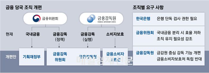 이재명 정부의 금융당국 조직개편안이 조만간 공개될 것으로 예상되는 가운데 한국은행·금융위원회·금융감독원 등 금융당국들이 생사를 걸고 막판 총력전에 나서고 있다.