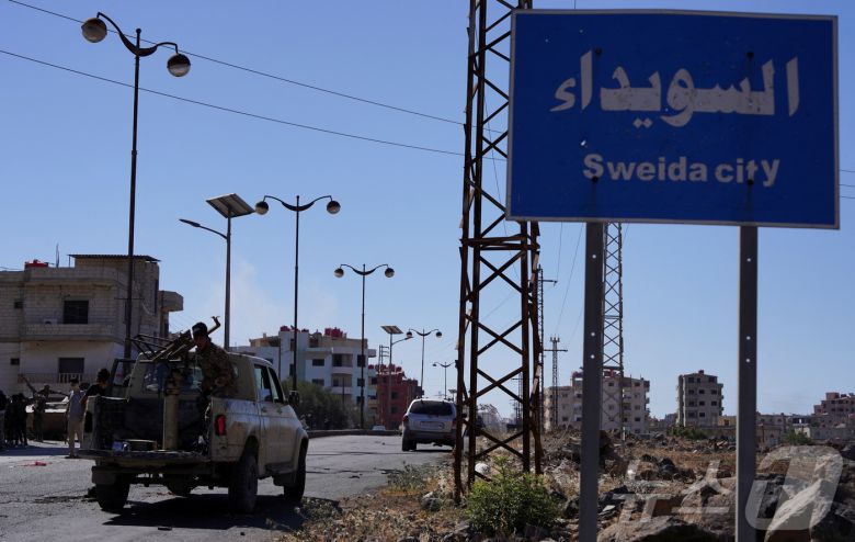 15일(현지시간) 시리아군이 남부 스웨이다 시티에 진입하고 있다. 이 지역에서 드루즈족 민병대와 베두인 부족이 충돌해 100명 이상이 사망하면서 시리아군은 탱크를 투입했다. 2025.07.15 ⓒ 로이터=뉴스1 ⓒ News1 김지완 기자 |