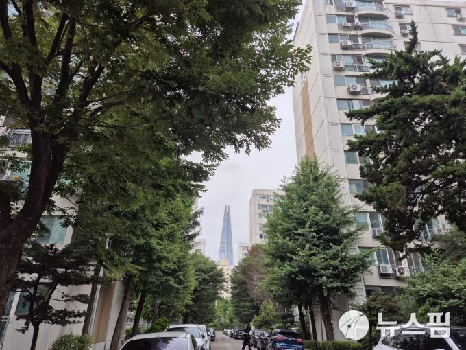 [서울=뉴스핌] 정영희 기자 = 15일 방문한 서울 송파구 송파한양2차 아파트 단지 사이로 롯데타워가 보인다. 2025.07.16 chulsoofriend@newspim.com |
