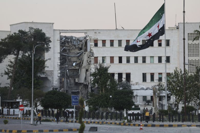 시리아 국방부 청사가 16일(현지시간) 이스라엘군 공습으로 일부 부서져 있다. [AP] |