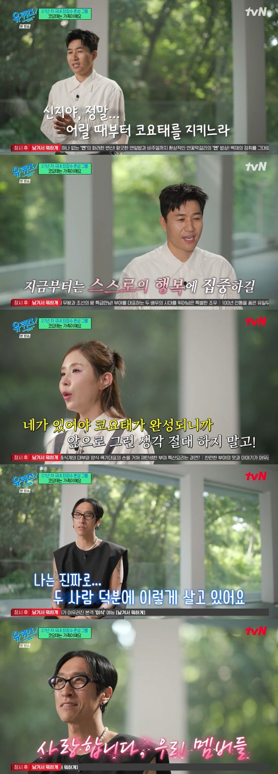 16일 방송된 tvN '유 퀴즈 온 더 블럭'(이하 '유퀴즈')에서는 코요태(김종민, 신지, 빽가)가 게스트로 출연한 장면이 전파를 탔다.
