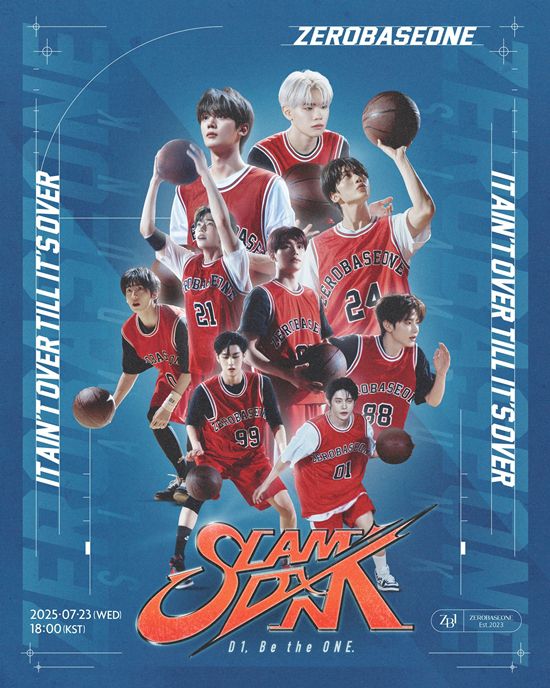 공개된 포스터 속 제로베이스원은 농구 유니폼을 입고 등장, 실제 경기에 나선 듯한 박진감 넘치는 포즈로 생동감을 더했다. 제로베이스원은 또한 선발 라인업처럼 꾸며진 포스터를 통해 다부진 각오를 전했다. '끝날 때까지 끝난 게 아니다'라는 문구처럼, 아홉 멤버는 '슬램덩크'를 통해 끝없는 매력을 선사할 것으로 기대된다.