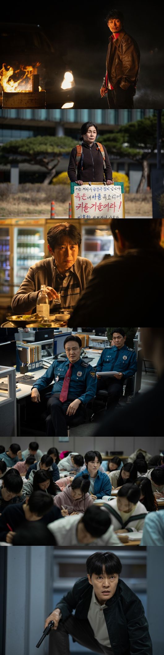 이도를 아들처럼 생각하는 파출소장 조현식(김원해 분)의 모습도 담겼다. 다시 총을 든 이도가 안타까운 듯, 술잔을 기울이는 그의 얼굴에 수심이 묻어난다. 만년 공시생 유정태(우지현 분)는 공부 열기로 가득한 교실 안에서 멍하니 허공을 응시하고 있어 궁금증을 높인다. 여기에 강렬한 포스의 경찰서장(정웅인 분)과 긴박한 상황 속에 놓인 주반장(조한철 분)의 모습도 흥미를 끌어올린다. 이처럼 다양한 인물들이 중심이 되는 각각의 에피소드가 어떻게 풀려나갈지, 사건을 따라가는 이도와 문백은 어떤 활약을 펼칠지 기대를 모은다. 무엇보다 극강의 몰입도를 선사할 연기 고수들의 시너지에 기대가 쏠린다.