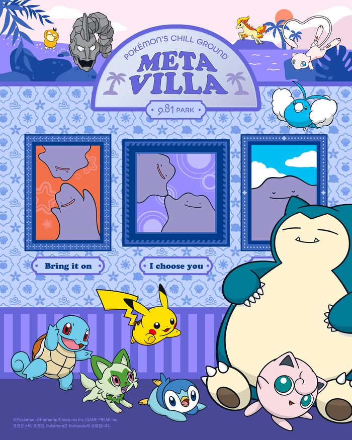 포켓몬: 메타 빌라는 ‘올 한 해를 바쁘게 보내고 있는 메타몽이 다른 포켓몬 친구들과 함께 별장에서 여유로운 시간을 보낸다’는 내용으로 기획했다. 9.81파크 제주 입구 부근에서는 높이 3.5m의 거대한 잠만보 풍선을 마주할 수 있다.