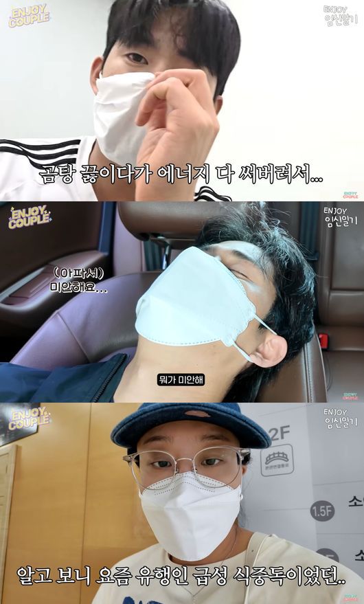 지난 16일 유튜브 채널 ‘엔조이커플’에는 ‘비상. 39.5도요?! 요즘 유행 심각하다는 식중독 걸린 쌍둥이 아빠!’라는 제목의 영상이 게재됐다.