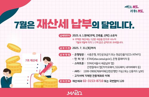 마포구(구청장 박강수)는 7월 정기분 재산세 납부의 달을 맞아, 구민들이 기한 내 납부할 수 있도록 적극적인 홍보와 납부 독려에 나섰다.